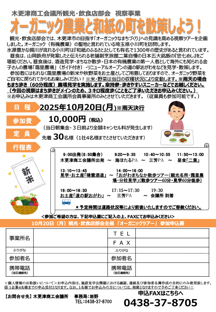 木更津商工会議所 観光・飲食店部会では、木更津市の目指す「オーガニックなまちづくり」への見識を高めるためにオーガニックツアーを企画