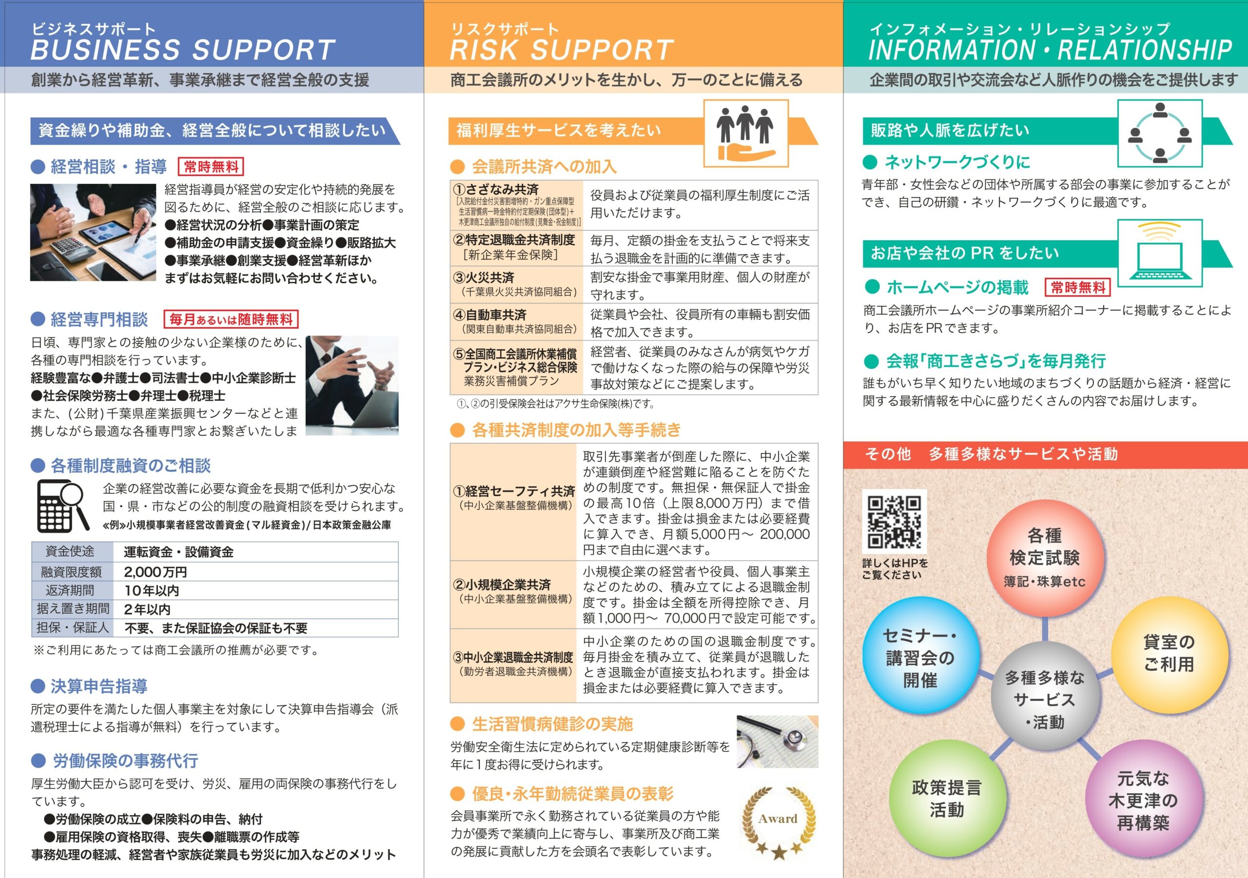 →木更津商工会議所の各種サービス等は、下の画像またはこちらのPDFデータでご覧いただけます。